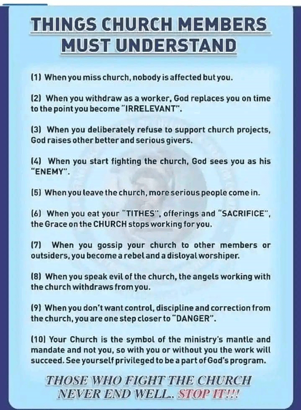 The Holy Spirit and His presence with you, as the church, are the seal and symbol not just of your ministry but of your redemption and faith (Ephesians 1:13). It’s not your religious or institutional church that holds power over you; since you are the church, God is the mandate and your mantle. While secular institutions, like orthodox religions, may thrive without you, the kingdom of God mourns and regrets the loss of you (Ezekiel 18:23). God bless you as you overcome the threats of cult-like behaviours and embrace the courage of the Holy Spirit.